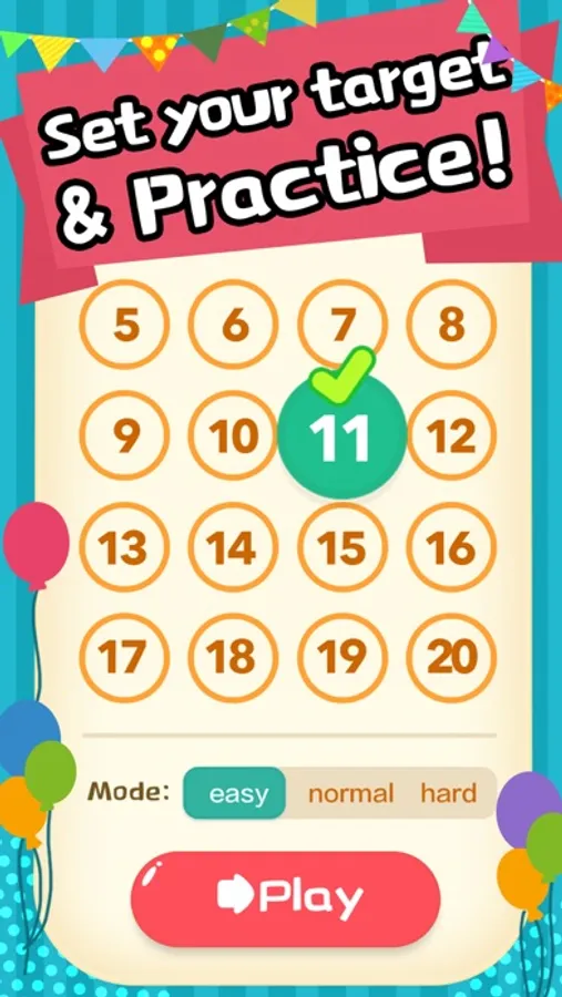 - Custom mode available for you to set any target number according to your kid's math skills.