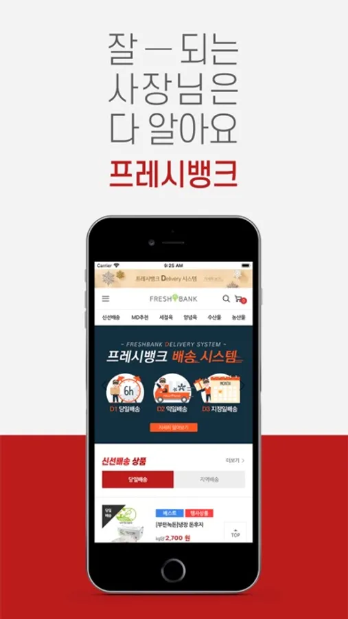 3.프레시 뱅크만의 D1 당일배송, D2 익일배송, D3 고객사 지정일 배송 시스템을 이용한 고객 맞춤 배송!