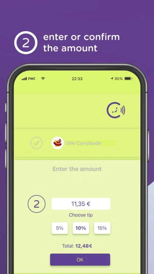 With PAY WITH CHARLIE you are able to give an additional tip to the amount to be paid (5%, 10% or 20%) .
