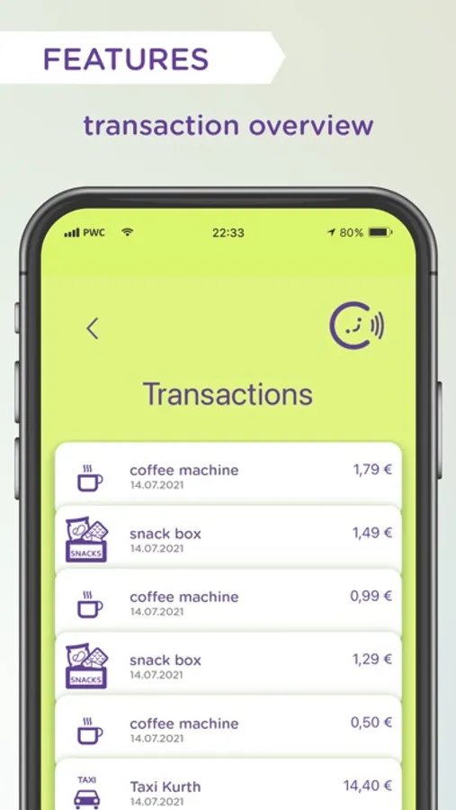 Directly in the app, you can view all your past mobile payments with PAY WITH CHARLIE in the transaction overview.