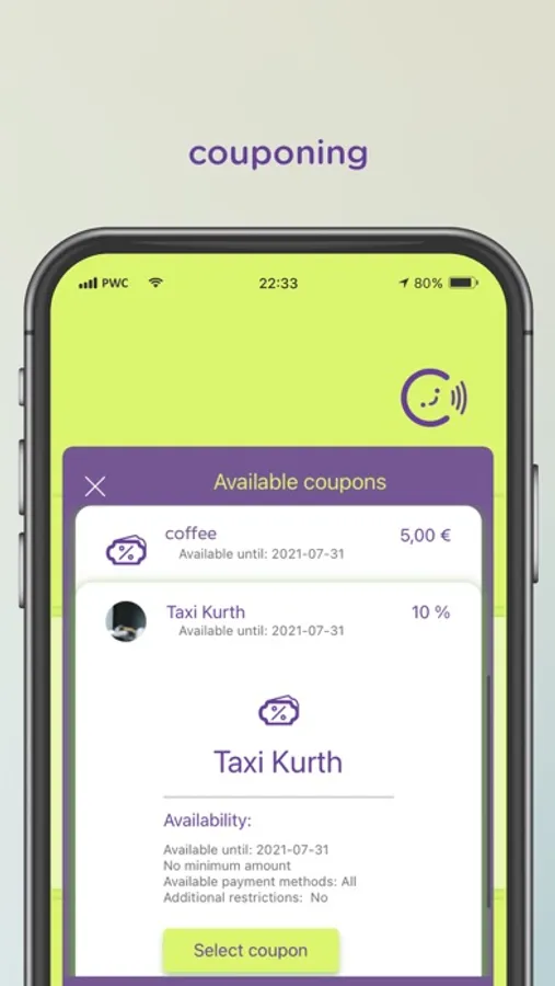 Available coupons are offered directly at the time of purchase and you can keep track of available coupons in the coupon overview.