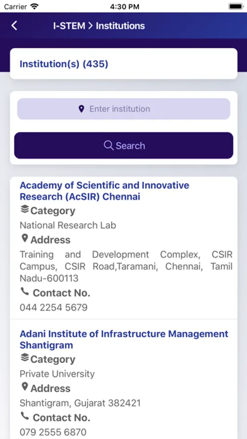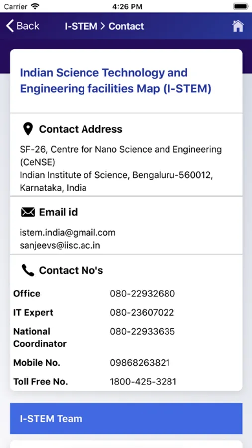 The I-STEM iOS application is the gateway for users to locate the specific facility(ties) they need for their R&D work and identify the one that is either located closest to them or available the soonest.