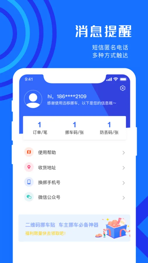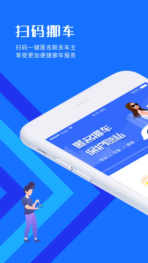 车上粘贴挪车二维码,扫描二维码,一键通知车主挪车。