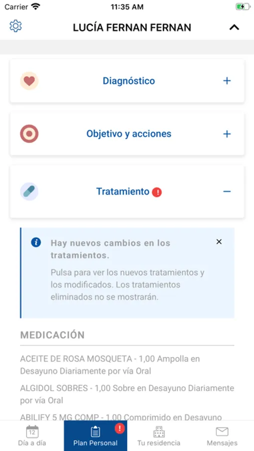 Acceder a información relativa a la medicación actual y realizar un seguimiento de los cambios de tratamiento o pauta.