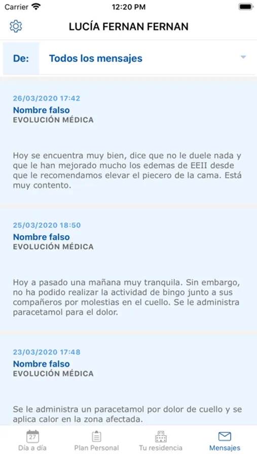 Conocer a los responsables de su cuidado en el centro y recibir directamente sus comunicaciones con información sobre el estado y cuidado de tu familiar.