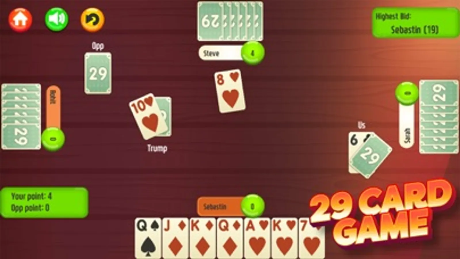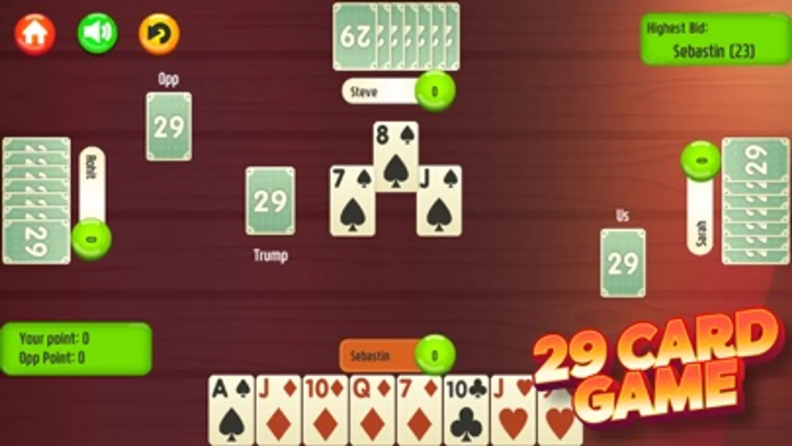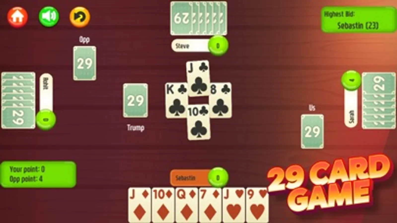 29 is a trick card game similar to other casino games like 28, Spades,28, Twenty Eight, and other similar games.