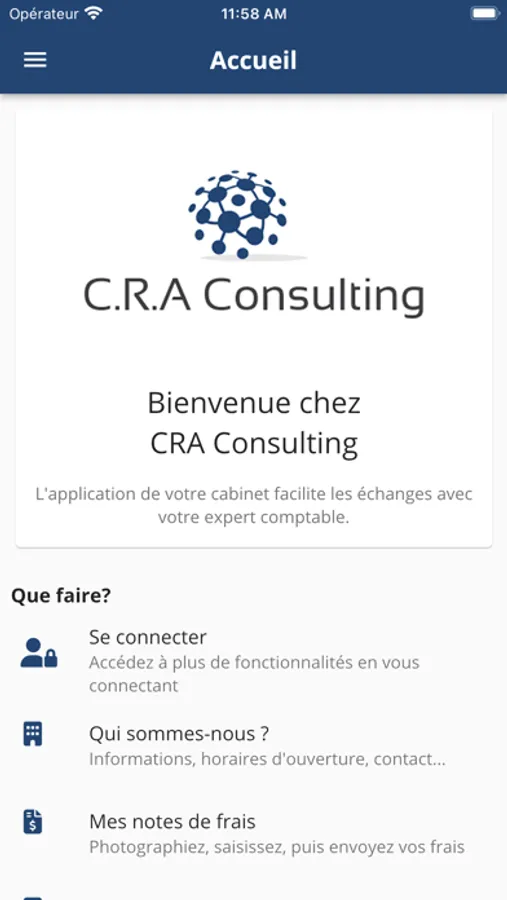 Because the world is changing, we offer you a handy application for managing your online account 7days/7 and 24h/24. This ease of use allows you anytime access to your documents, consult the news of the firm, or to gain visibility on various activities related to your record. We wish you a nice navigation!