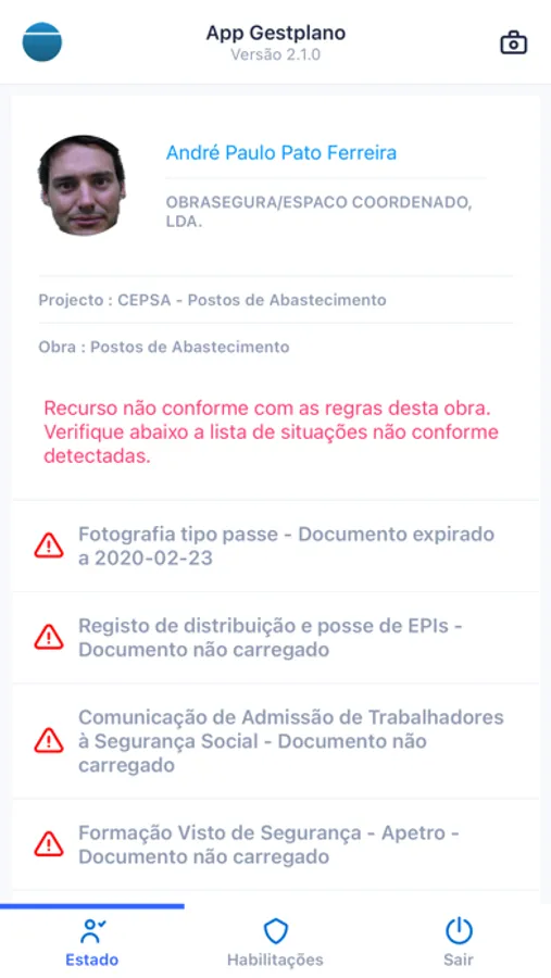 Valide o estado actual dos seus funcionários e acesso às respectivas obras, através desta aplicação.