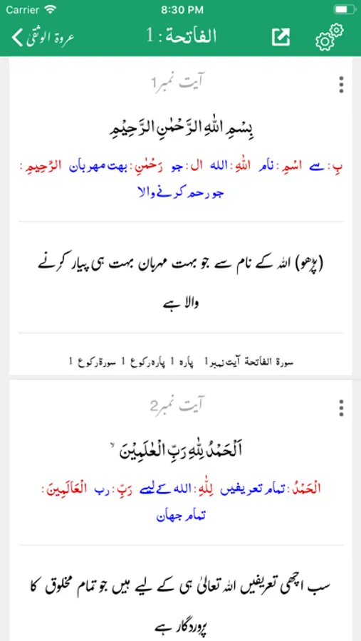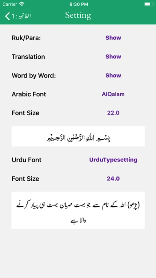- Ability to show/hide Word by Word, Quran Translation (Tarjuma)