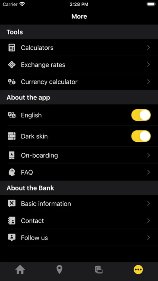 - Useful tools and information for all application users at the very entry point (savings calculator, loans calculator, exchange rates, intro video, FAQ, contacts)