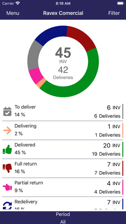 É um aplicativo direcionado ao vendedor, permitindo o acompanhamento on-line das entregas de sua responsabilidade. O aplicativo também possibilita que a equipe comercial consulte as entregas e seus status por período, visualizando detalhes de endereços e coordenadas no mapa