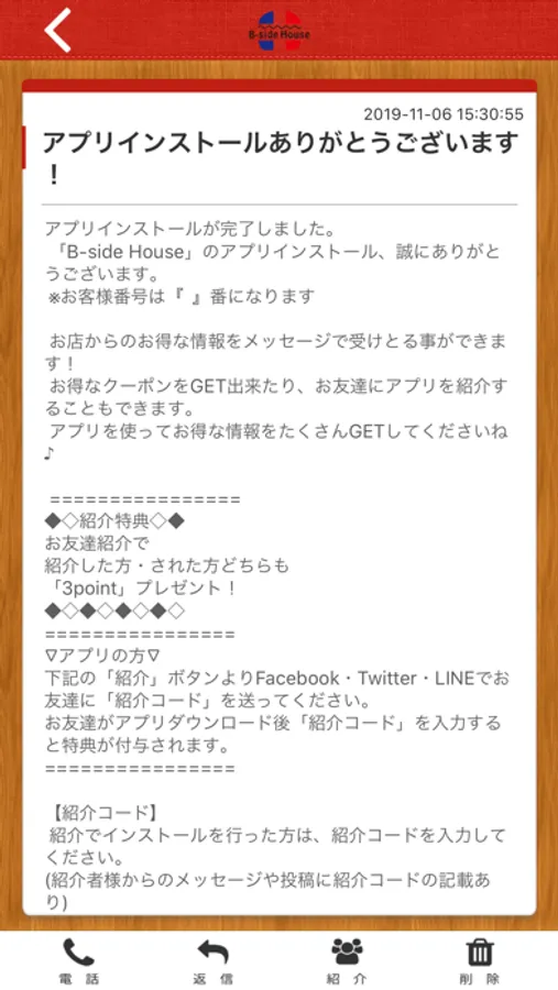 B-side HouseのアプリをSNSを通じてお友達に紹介する事ができます。