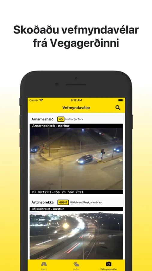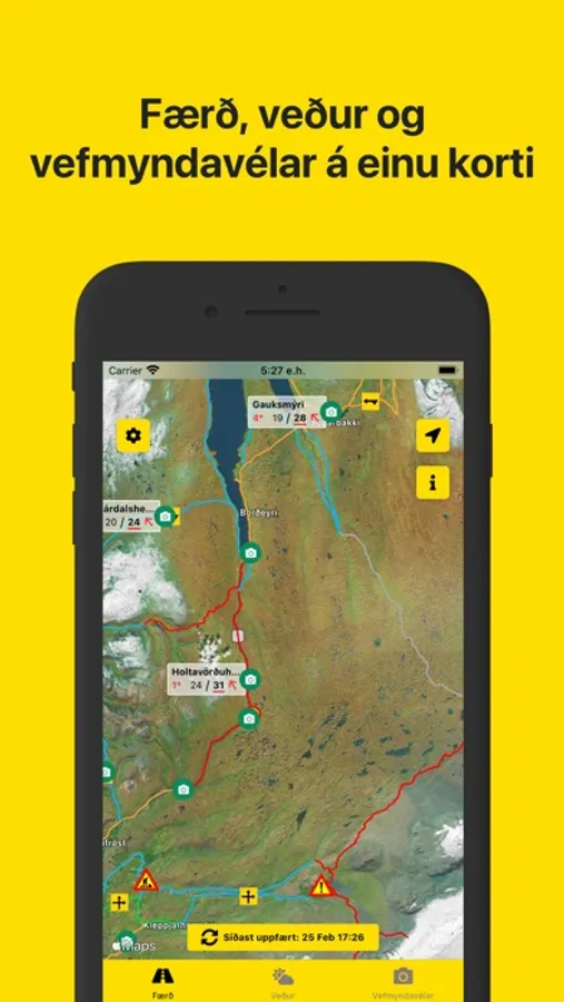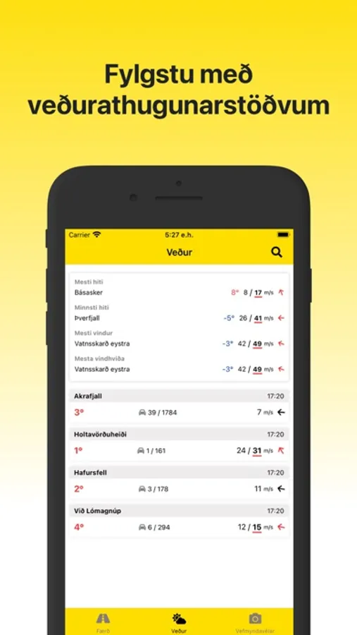 Easily access information about road conditions, weather observations and road cameras on Icelandic roads.