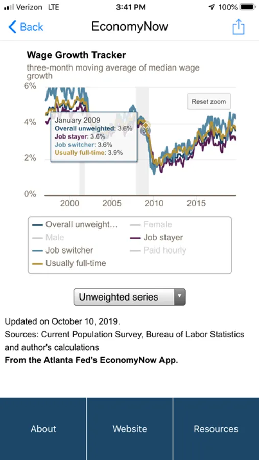 Stay up to date with the economy by using the Atlanta Fed’s EconomyNow app. Our EconomyNow app allows you to view some of our most popular tools that incorporate timely data on the labor market, inflation, and growth, such as GDPNow and the Wage Growth Tracker. The app also offers interactive and shareable charts as well as analysis of the latest data. The EconomyNow app is perfect for economists, financial market professionals, academics, students, and anyone else interested in economic data.