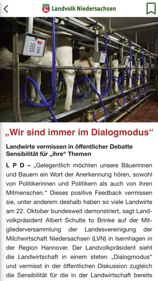 Die Landvolk App hält Sie über die Landwirtschaft und den ländlichen Raum in Niedersachsen auf dem Laufenden. Landvolk Mitglieder erhalten exklusiven Zugriff auf Fachinformationen.