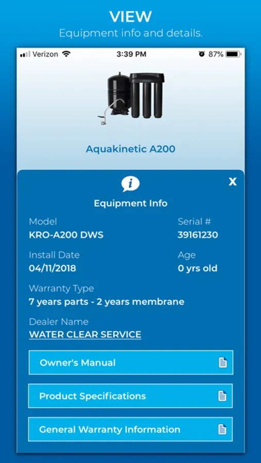 - Access your owner's manuals, maintenance schedule, product information, warranty dates and details