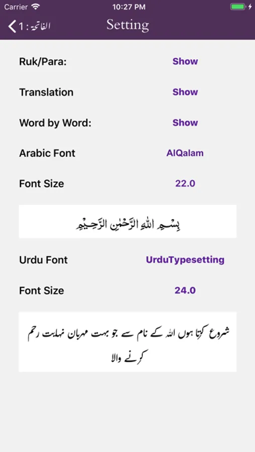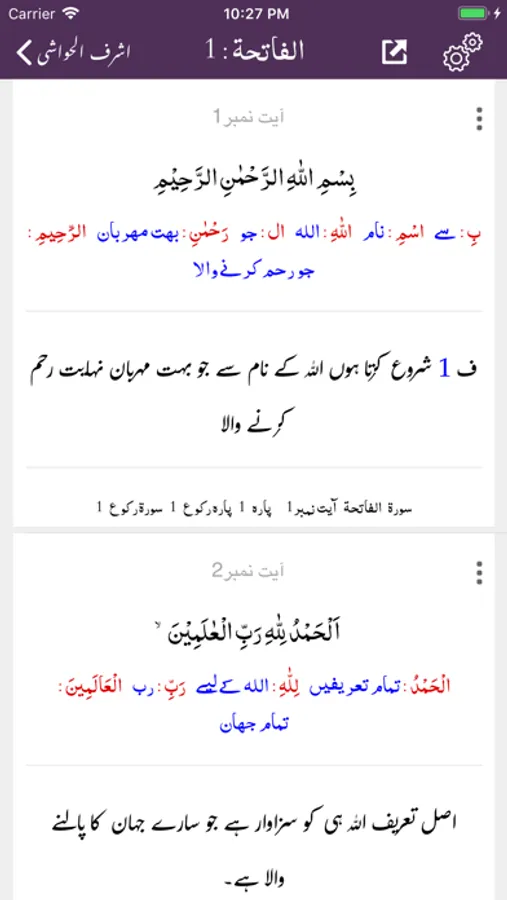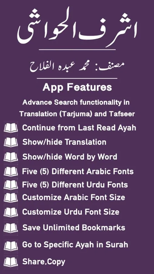 - Ability to show/hide Word by Word, Quran Translation (Tarjuma)