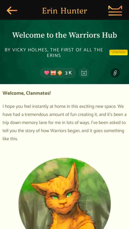 Explore the world of Warrior Cats and be the first to see exclusives from Erin Hunter, as well as amazing fan art and videos. Have your say with polls and reactions, or test your knowledge with quizzes!