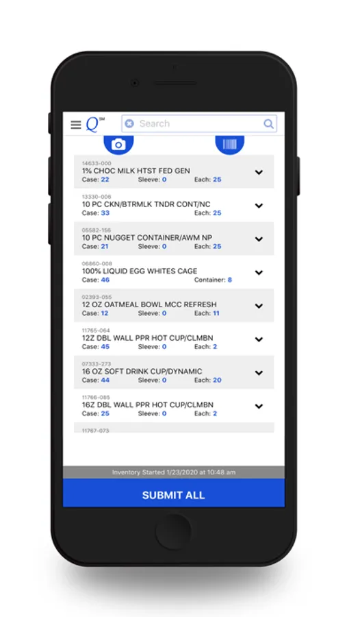 The QsrSoft Inventory App allows inventory to quickly and accurately be taken and submitted. Inventory can be entered manually or scanned via the device camera or bluetooth scanner. The app submits the inventory either via wi-fi or cellular network and eliminates the time-consuming and cumbersome device syncing processes.