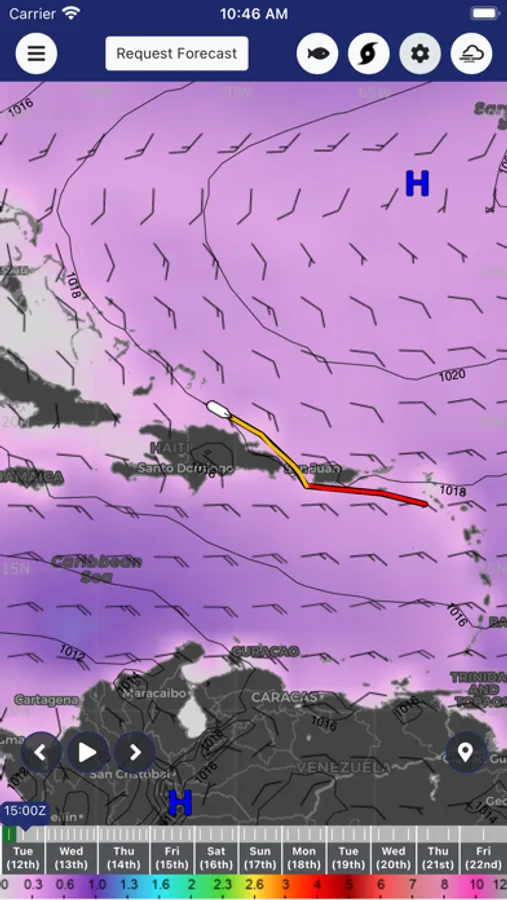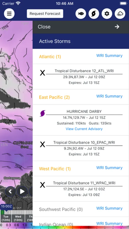 Weather data and forecasts are continuously received and processed in house and immediately distributed to the website and mobile application. You have complete control over the map at the tip of your finger. You can pan the map all over the world and zoom in and out. The forecast maps provide graphical forecasts going out 2 days for Basic subscribers, and 10 days for Premium subscribers. The Angler’s Basic and Premium subscribers will have additional access to the Fishing Planner.