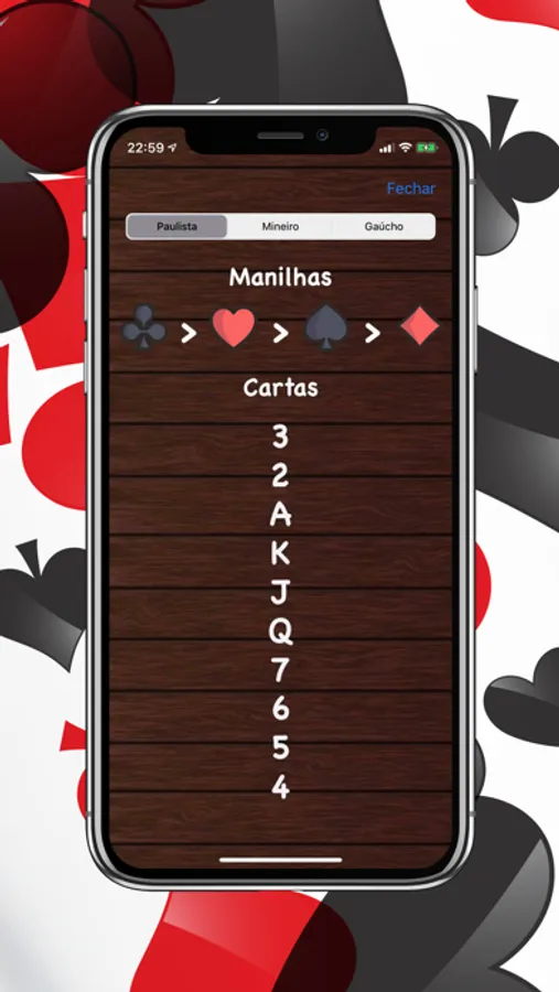 • Ordem das Cartas Personalizadas: Nunca mais fique em dúvida sobre as regras. Nosso app exibe a ordem correta das cartas para diferentes variantes do truco, permitindo que você jogue sem interrupções e com total confiança.