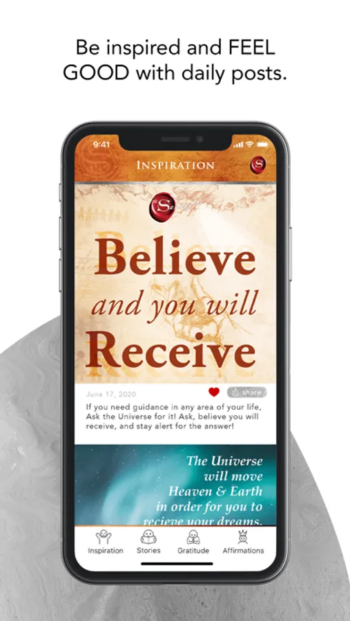 Through a sequence of tools such as INSPIRATION, STORIES, GRATITUDE, and AFFIRMATIONS, The Secret Super App will give you access to content that will inspire you and uplift you every single day, keeping you focused on your dreams and in the perfect state of mind to attract the life of your dreams.