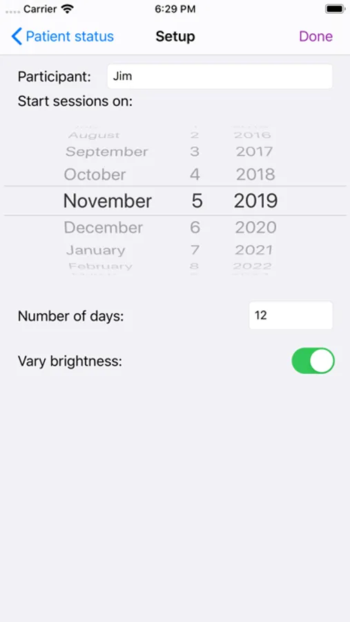 The Pinnacle Home app continues the visual stimulation in the client’s home environment. The practitioner configures the app to provide visual stimuli twice daily to the patient for a configurable number of days. The patient takes the configured iOS device home and uses it as prescribed. During use, the app logs the provided sessions.