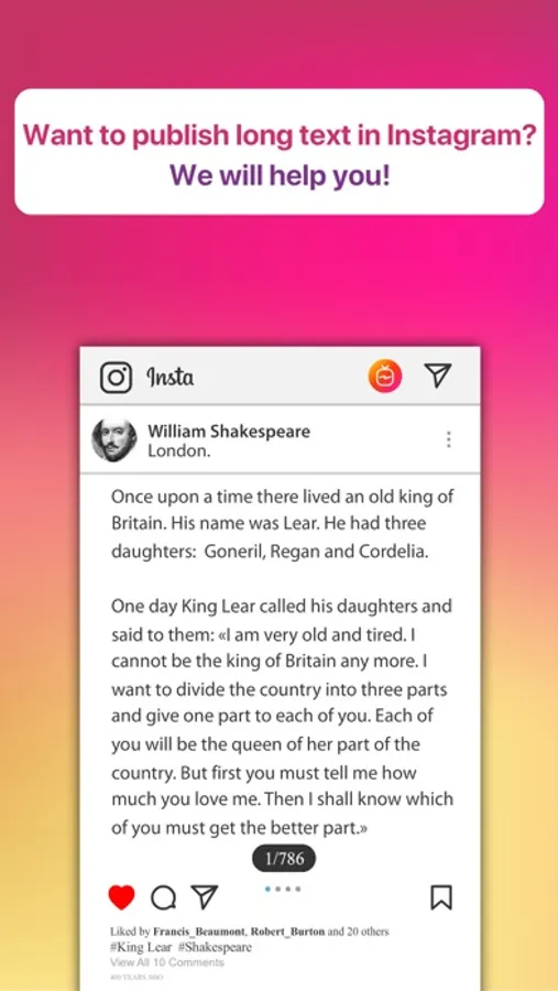 Under a photo or video on Instagram, you can leave no more than 2000 characters of description. Often this number of characters is too small. There is a way out of this situation - converting text to image. In such a tricky way, you can increase the number of characters in your Instagram post several times.
