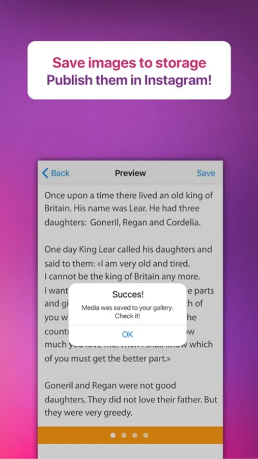 3) To save the result - just click on the “Save” button and your text will be saved in the gallery as pictures.