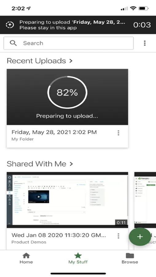 Panopto Mobile lets you access all of your organization’s video content from your iPhone or iPad. View HD video presentations, lectures, training courses and events. Search inside your videos to find any keyword or topic. And upload or record videos using your device's camera app.