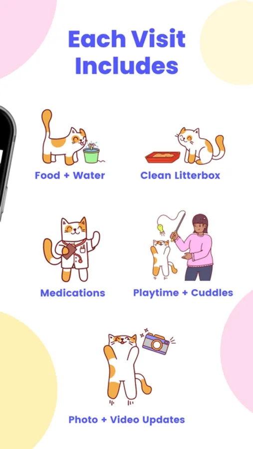 Your sitter will conduct a free Meet & Greet with you to review care instructions, home logistics, and pick up a key. Whenever your sitter visits the kitties, you will receive text updates and at least one photo or video letting you know the kitties are having a purrific staycation at home.