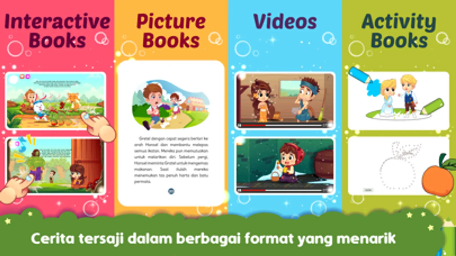 "RIRI" adalah aplikasi yang dirancang khusus untuk anak-anak, menyediakan berbagai pilihan buku dengan ilustrasi yang menarik dan tersedia berbagai pilihan. Cerita diangkat dari berbagai jenis seperti cerita rakyat, dongeng dunia dan fabel yang memiliki nilai moral.