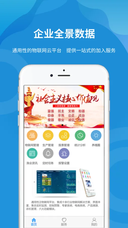 精讯云智慧渔业渔业平台包括物联网管理,生产管理,销售管理,报表管理,统计分析,定时任务,渔业资讯等模块。为渔业帐户提供一站式的智慧渔业养殖管理服务。