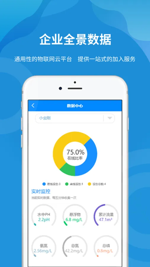 1.数据中心:以图表形式显示当前用户下绑定设备的实时检测参数数据,以及相关历史数据记录的查询。