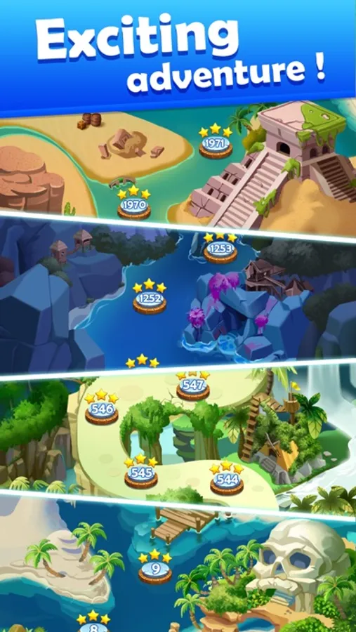 Matching jewels to get the pieces through the adventure, and pull these pieces together to puzzle treasure map. Second, according to the tips of the treasure map, complete the difficult task, explore the treasure key. Finally, combine special jewels to pass tricky puzzles, hunter treasures with boosters, become jewelry legend.