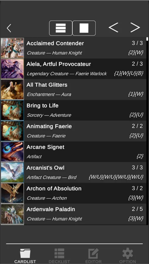 - Easy card search by basic parameters such as card name, subtype, oracle, format, card set, color, mana cost, type, rarity, power and toughness