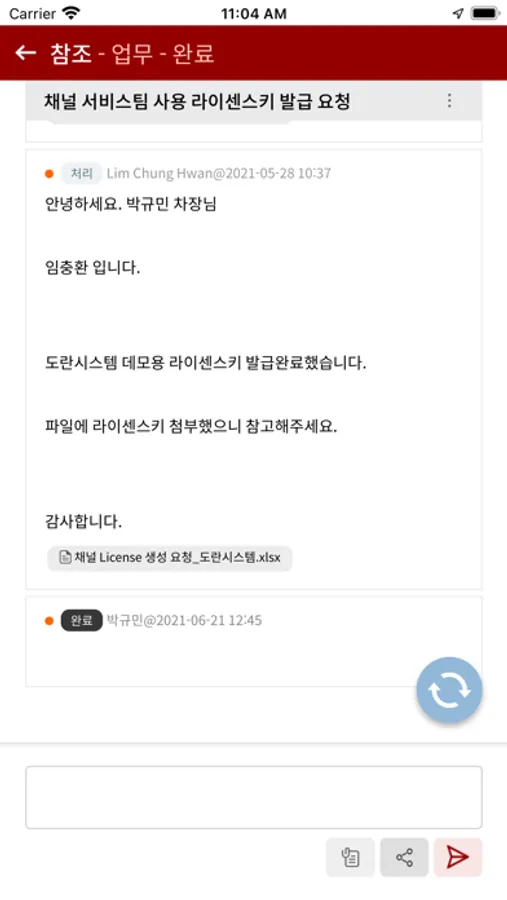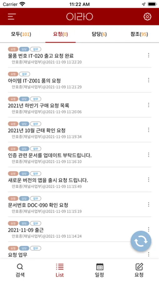 E-Mail, 메신저 앱, 전화 처럼 손쉽고 간편하게 업무요청을 할수 있고,