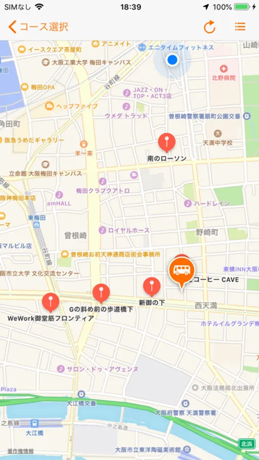 マップ上にバスの位置も表示されるため、大まかな位置もビジュアルで確認できます。