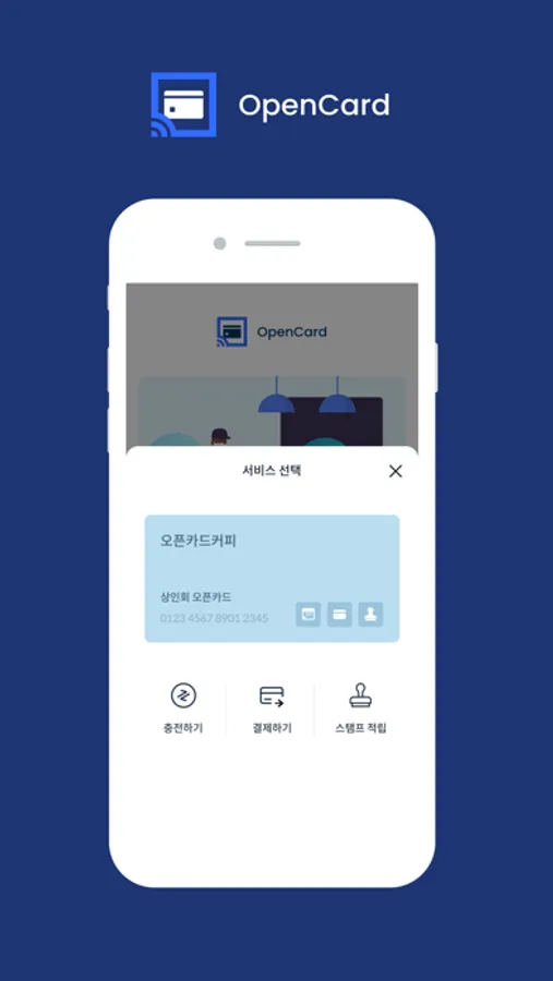 - 상점의 오픈카드를 선불카드처럼 사용하세요.