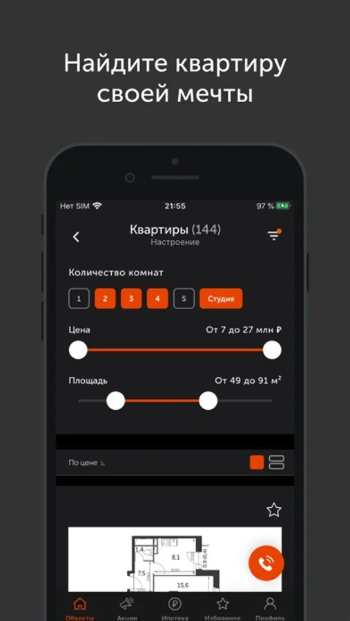 - Быстро и просто найти нужную вам квартиру, используя фильтры;