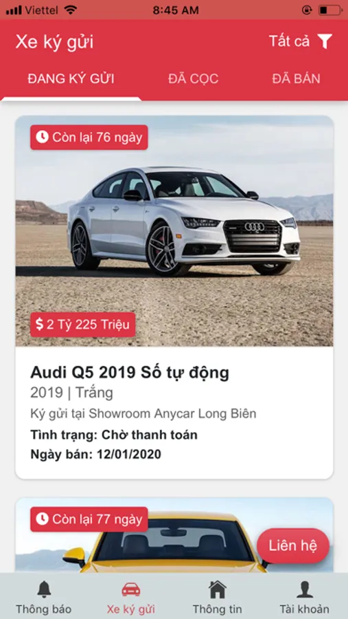 Đại lý ký gửi xe tại Anycar sẽ dùng ứng dụng Anycar - Đại lý để xem tình trạng ký gửi của xe, xem được car check của xe.