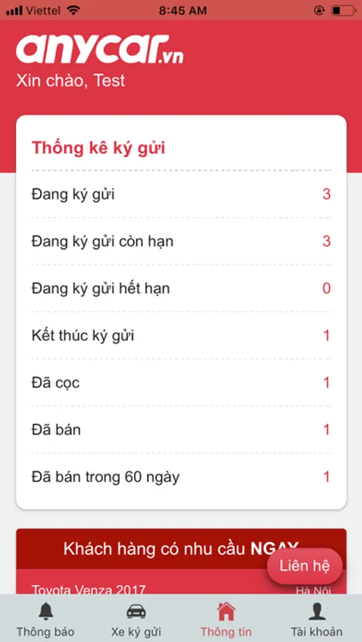Các chức năng trên app Anycar - Đại lý 1.3: