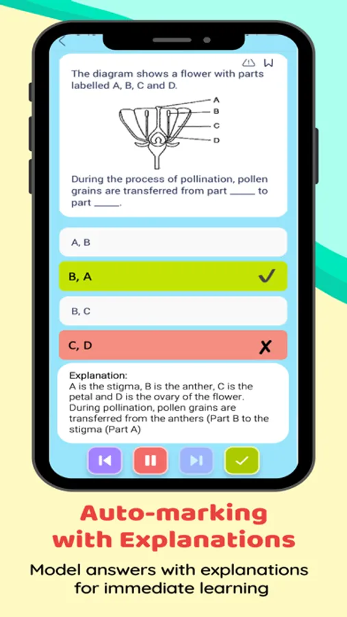 Questions can be bookmarked so that you and/or your child can easily refer back to them or reach out to a teacher/parent for more support. If your child needs additional help, there are also videos by teachers explaining how to derive the correct answer using the relevant answering techniques.