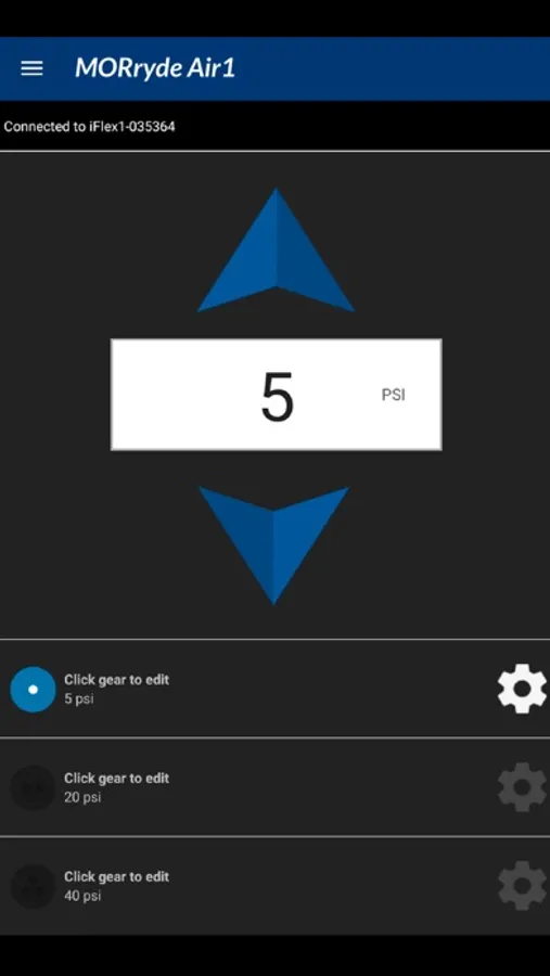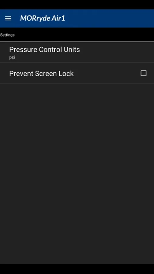 Welcome to the MORryde Air1 mobile app. Connect this app to the system to control air spring pressure, ride height, kneel your toy hauler, update the firmware of the controller and check diagnostics. Save setpoints for quick and easy adjustments between loaded and unloaded towing. Use a low pressure setpoint to quickly kneel the vehicle for easy loading and unloading.