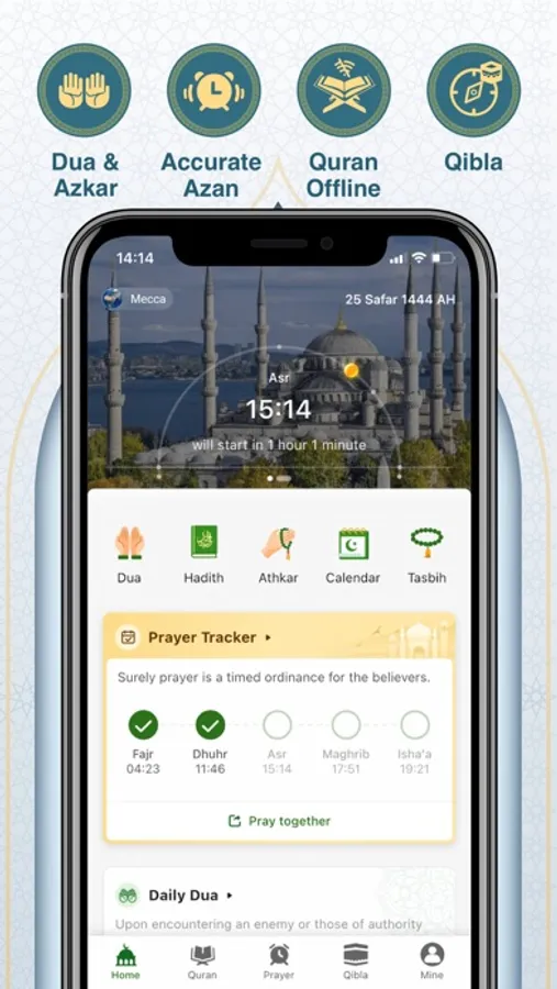 Discover our new Muslim prayer times & Azan services and All Islamic features function.
