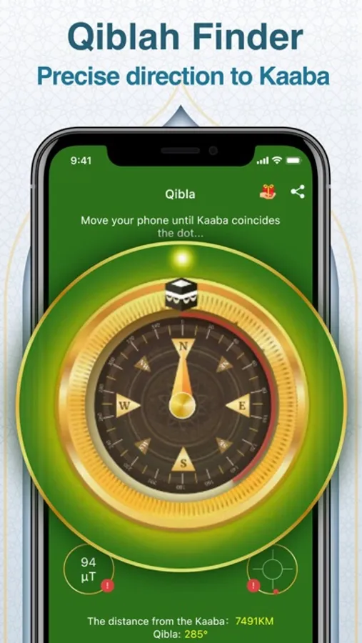 The compass of the Qiblah that GPS and network-based are very precise from anywhere in the world to Muslim prayer on time to Azan