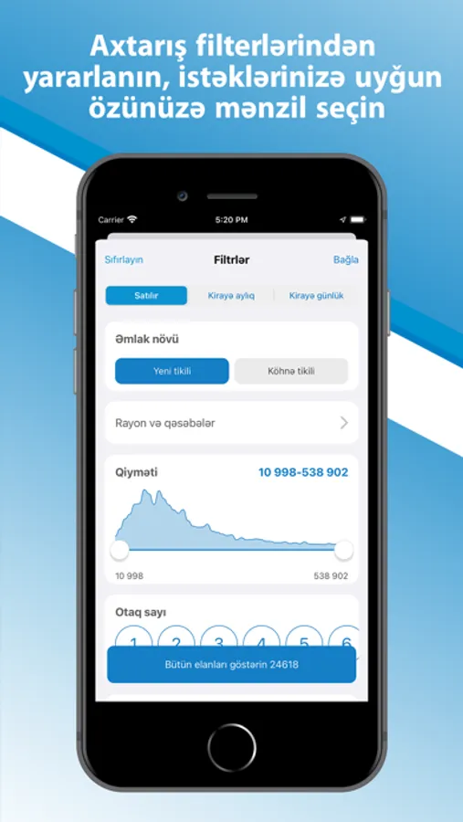 Yox.la tətbiqi sayəsində daha effektiv axtarın, vaxtınıza qənayət edin! Çünki bizim tətbiq mülkü bir çox parametr üzrə axtarış verməyə imkan verir - şəhər, rayon, küçə, metrostansiyalar, tikinti şirkətinin adı və ya hal-hazırda yerləşdiyiniz məkan üzrə. Eyni zamanda, qiymət üzrə filter köməyinizə gələcək.