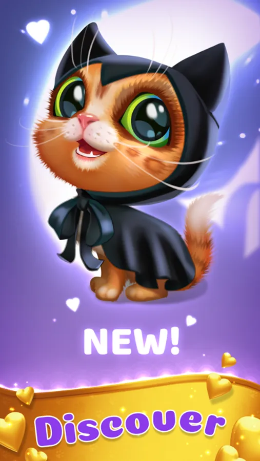 • Discover over 150 fantastic cats to match, combine and interact in 100 challenges!
