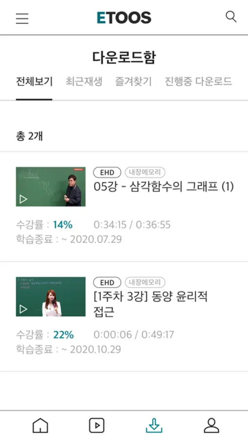 3. 다운로드함에서 언제든지 내가 원하는 강의 수강하기!