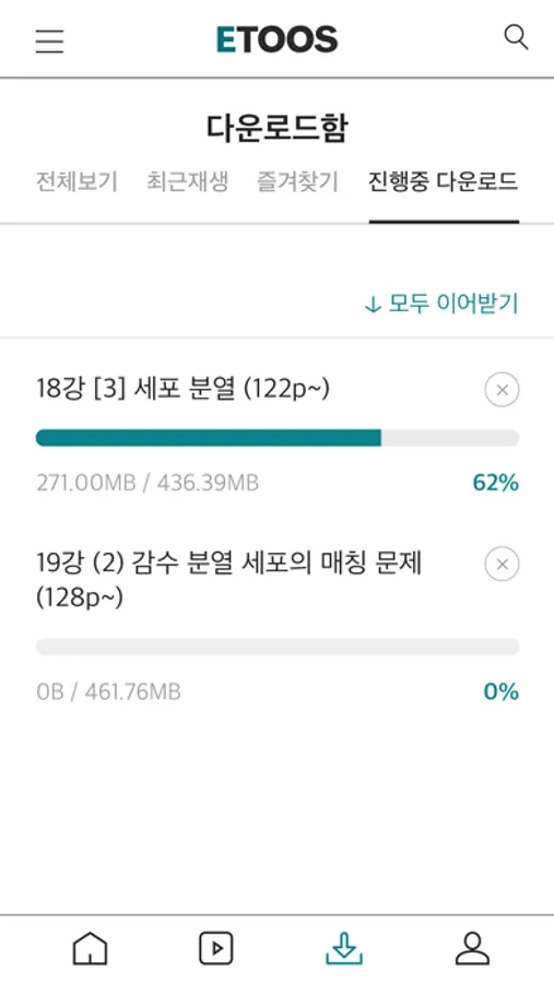 - 이어받기 기능을 통해 중단된 시점부터 강의를 이어서 다운로드 받을 수 있습니다.